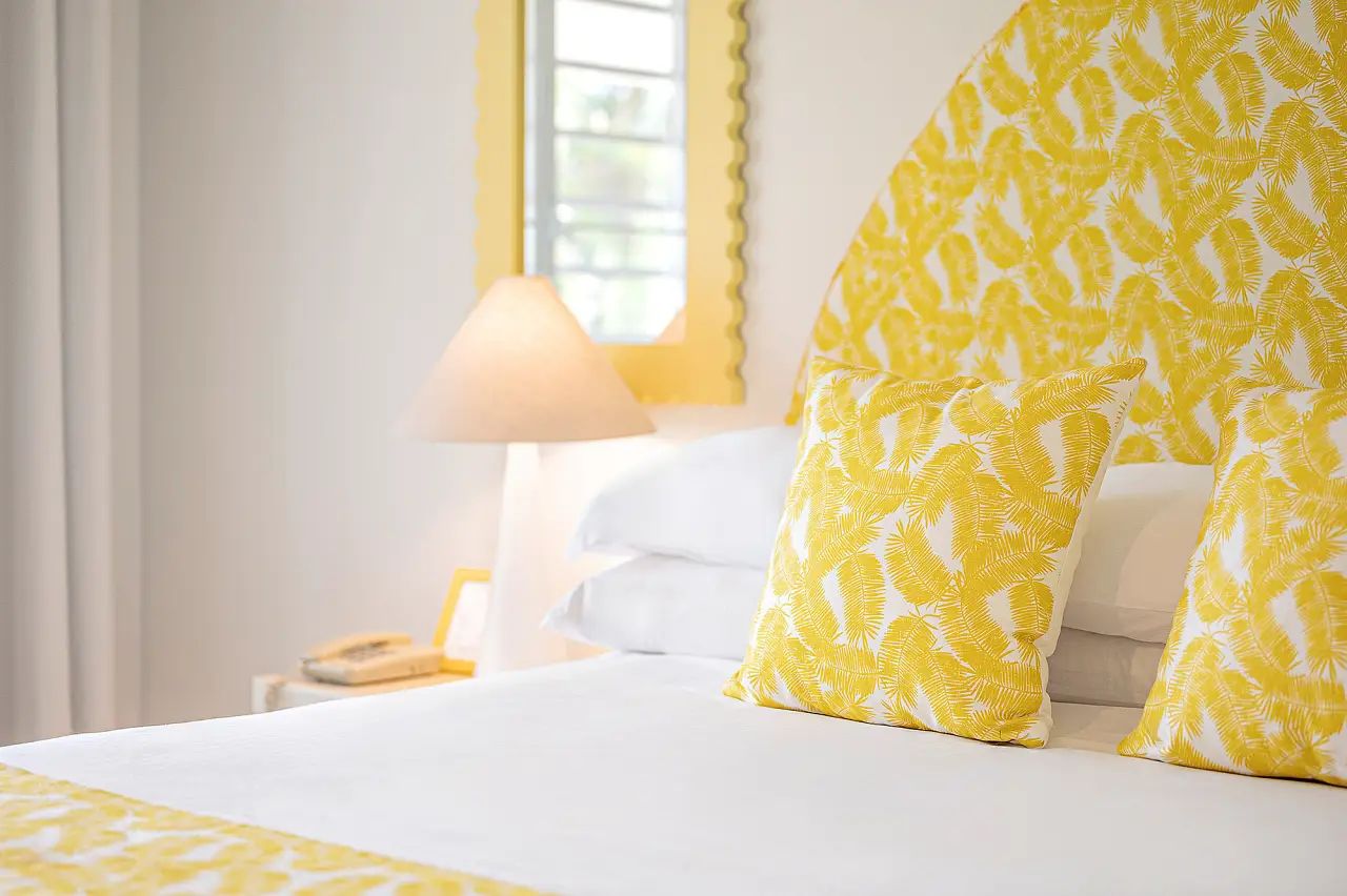 Montpelier’s 18 rooms and villas are individually styled, defined by confident use of colour, graphic pattern, and light-filled spaces. High ceilings, white-painted beams, and open layouts create a clean architectural base, while bold textiles and custom prints inspired by the island bring energy and character to each room. Private verandas invite in sea air and greenery, with interiors designed to feel expressive, relaxed, and full of character.